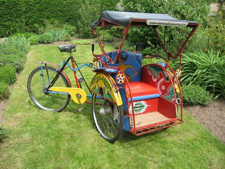 Erg bijzonder in onze verhuur is de becak, een fietstaxi uit Indonesië. Er kunnen één of twee passagiers vervoerd worden in een bakje met een of twee zetels, door een rijder die achterop zit en trapt. Het is een veelgebruikt vervoermiddel in de grote steden zoals Jogjakarta. Al heel wat stelletjes zijn getrouwd in deze bijzondere vervoersmiddelen.