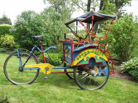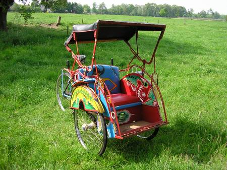Veerbeek Fietsverhuur heeft diverse fietsen in de verhuur waaronder ook een speciale 8 tot 10 persoons familiefiets en een becak (fietstaxi uit Indonesië).